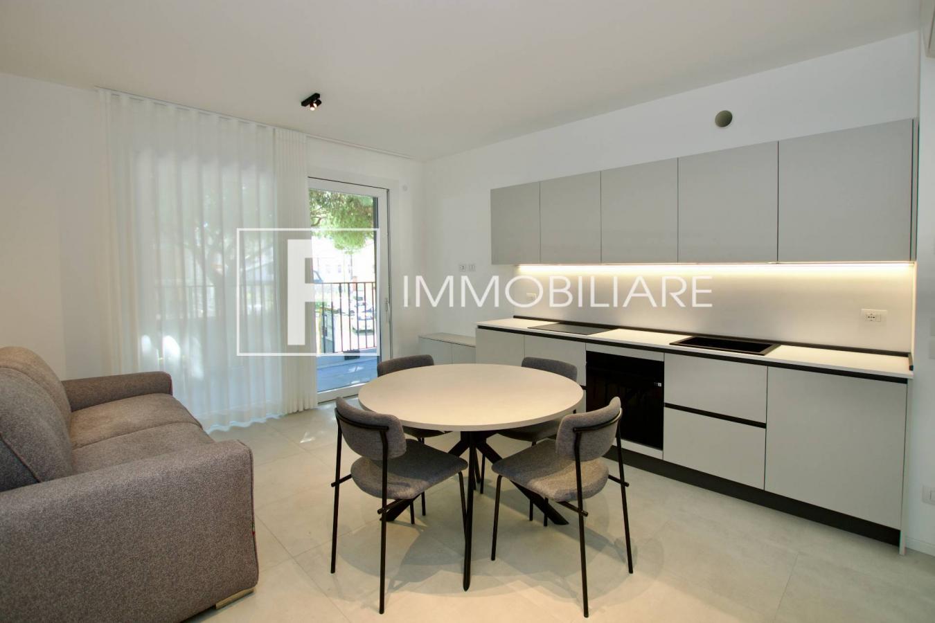F-Immobiliare ti propone questo NUOVISSIMO APPARTAMENTO COMPLETAMENTE ARREDATO in posizione centrale a soli 300 metri dalla spiaggia più desiderata dell'Alto Adriatico in palazzina di soli sette appartamenti, servita da ascensore e ridotte spese di gestione condominiale.