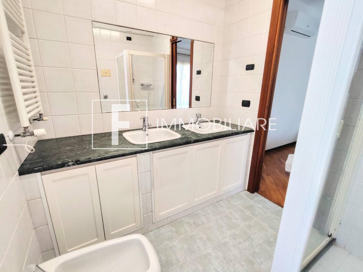 Salendo le scale, sui piani mezzanini, troviamo una prima stanza matrimoniale, con cabina armadio e bagno finestrato in camera con doccia e doppio lavello.